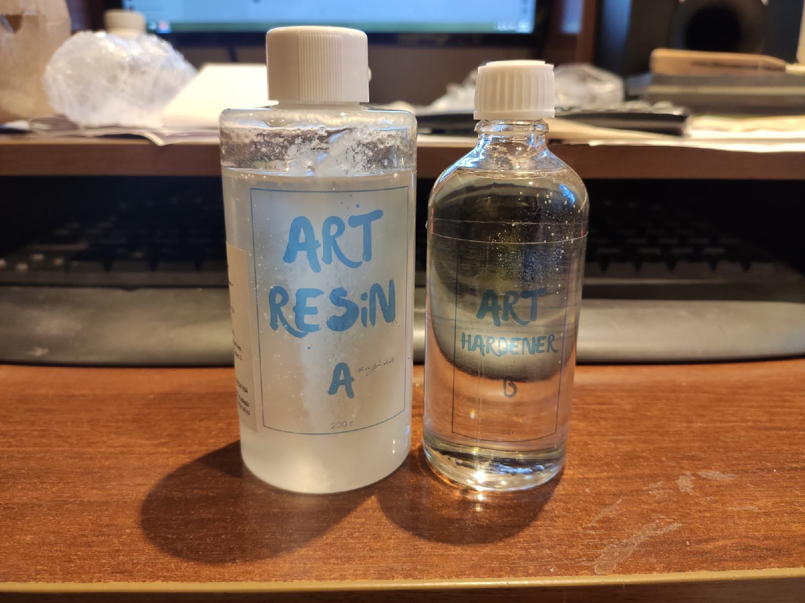 Сравнивая с фото сразу после заливки можно заметить что эпоксидка немного пожелтела от воздействия ультрафиолета.