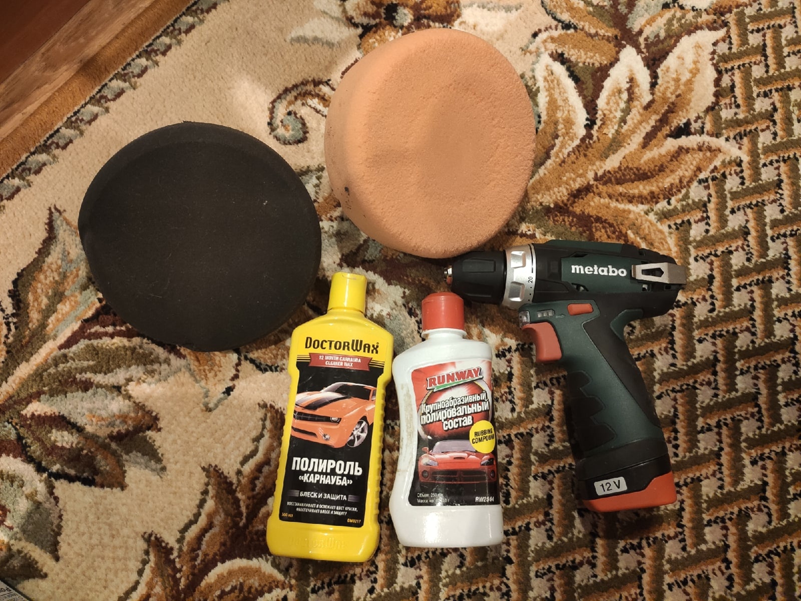 Дальше черед полировки. Полировал двумя поролоновыми кругами автомобильными полиролями с помощью шуруповерта.