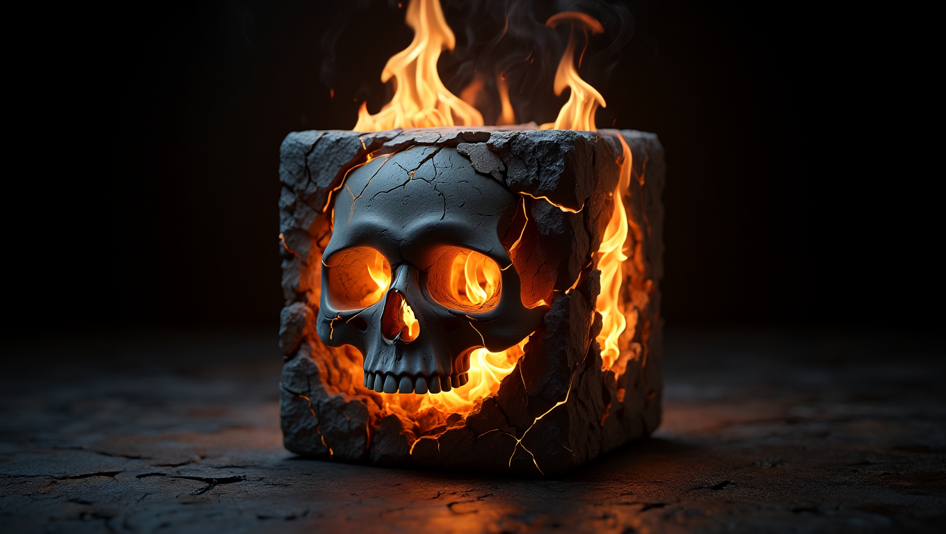 2 EvPix Огненный куб 7 месяцев назад Арты нейросетей Нейронные сети Обои на рабочий стол Куб Огонь Череп Камень Тьма Свет Пол Поверхность Ещё 0