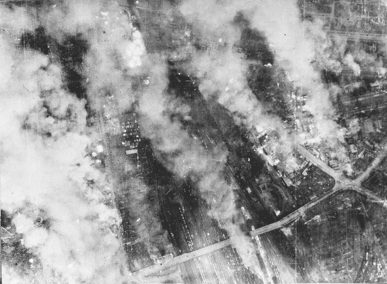 К полудню до города добрались и американские самолёты с истребительным прикрытием. На город упала ещё 771 тонна бомб, а на следующий день ещё 466.