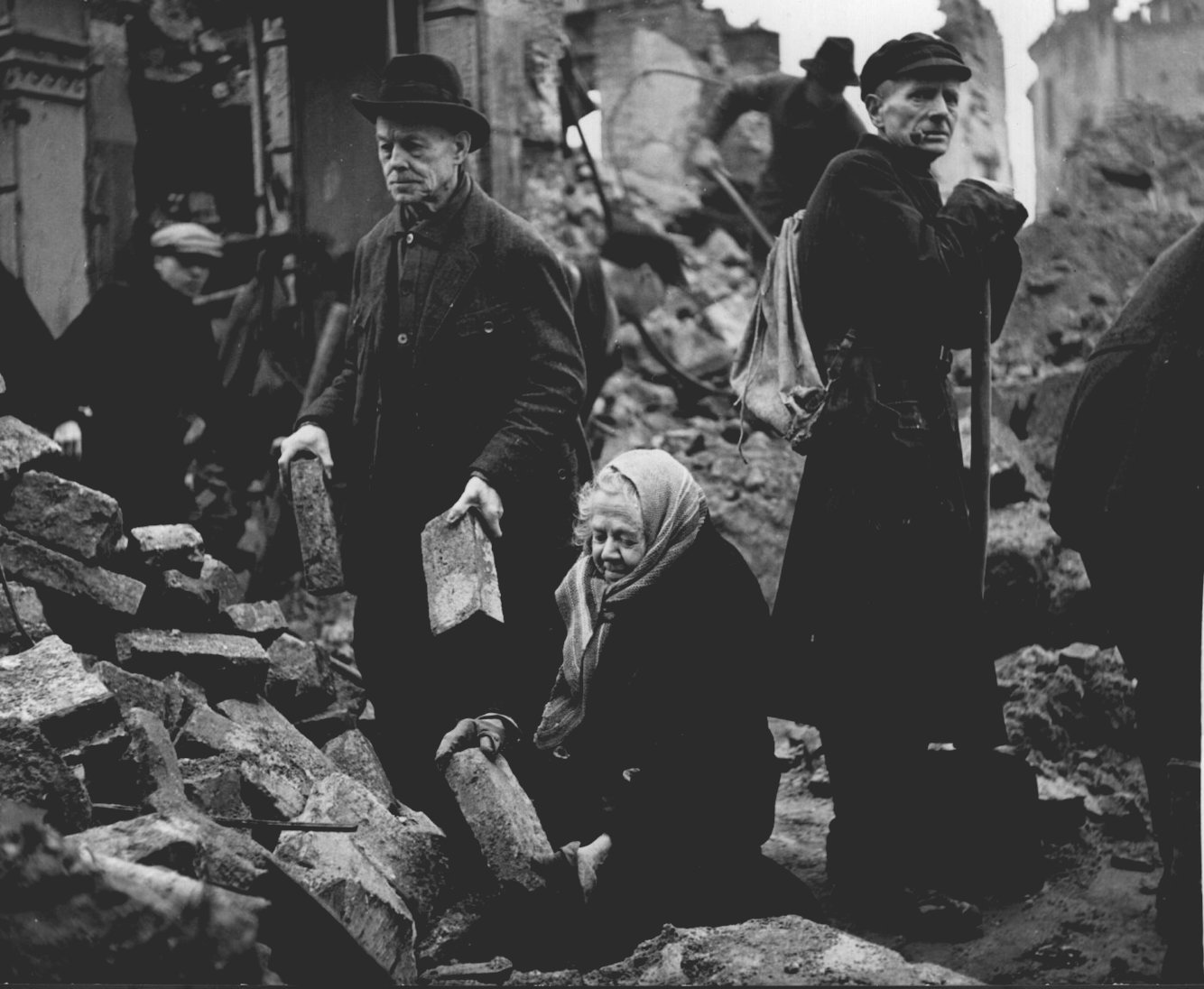 Два старика, Густав и Альма Плитц, помогают в разборе завалов, весна 1946