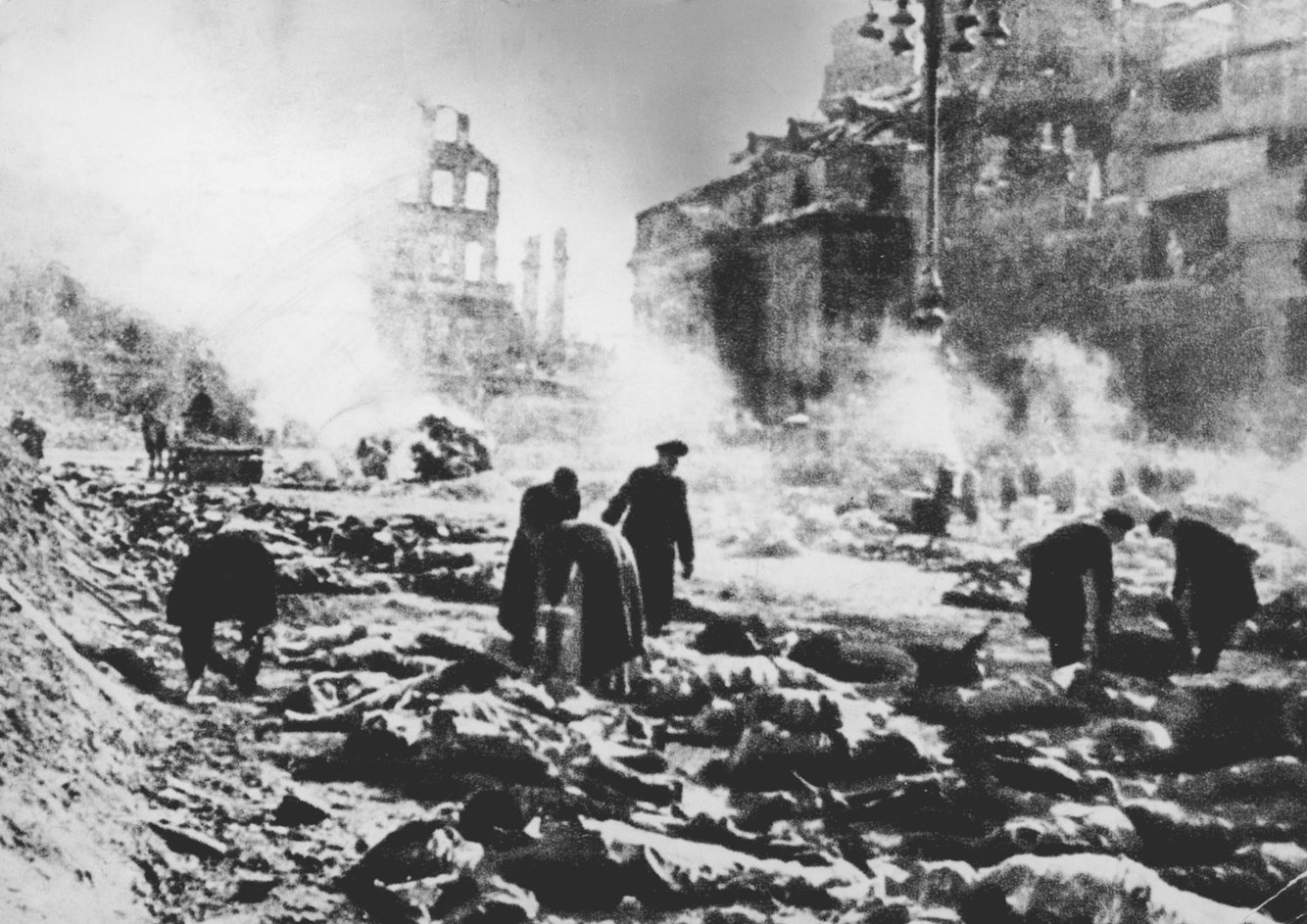 Тела погибших в Дрездене: 1,2 — на улицах города, 3,4 — в бомбоубежищах