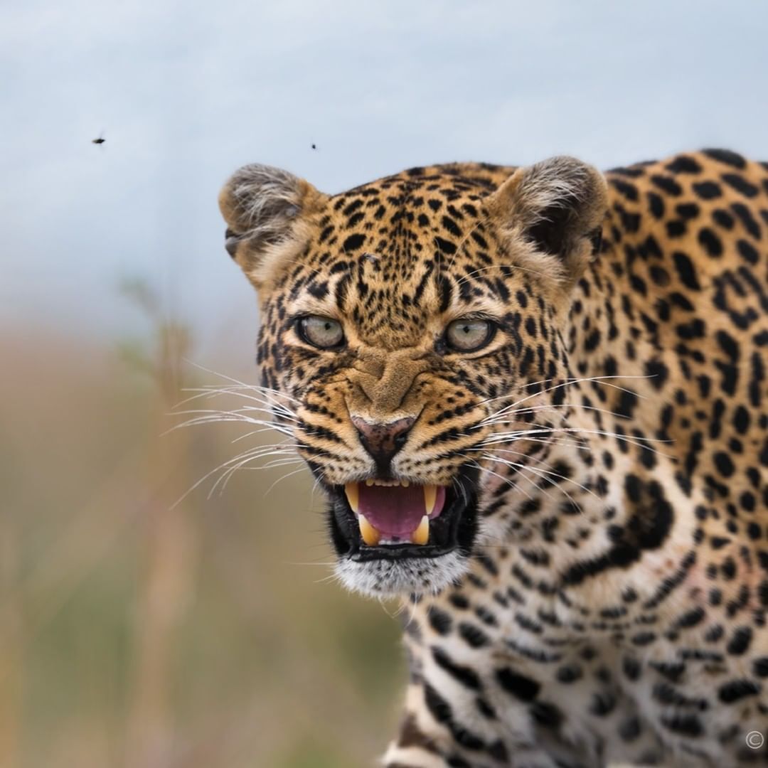 Самка леопарда недовольна тем, что львица украла её добычу.