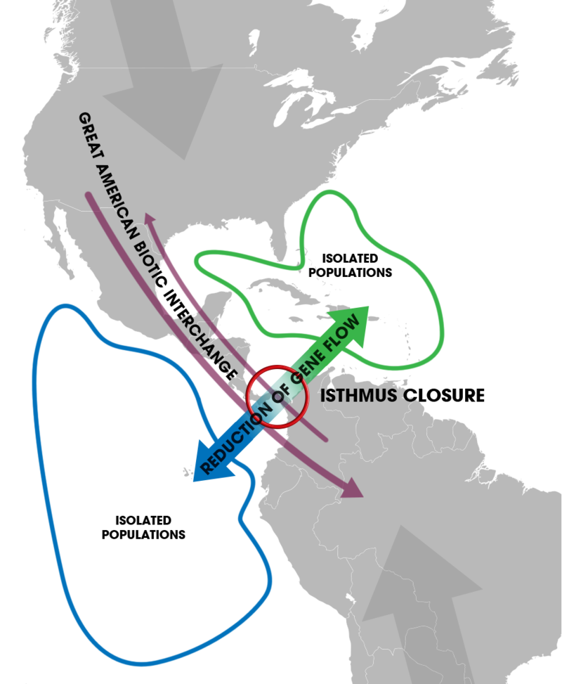 С появлением панамского перешейка сухопутные виды начали миграцию, а морские были изолированы друг от друга