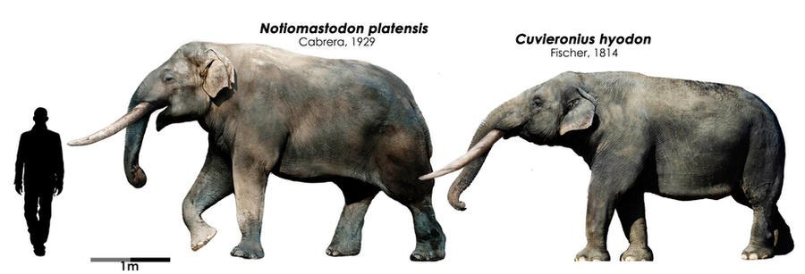 Свидетельства Великого обмена можно увидеть, например, в североамериканских хоботных, попавших в Южную Америку. Кювьероны — крупные животные, напоминавшие слонов. Чуть меньших размеров, но плотнее в телосложении. Ещё фишечкой кювьеронов были слегка закрученные бивни. Средний такой «слон» был ростом около 2,3 метра и около 3-3,5 тонн. Обитал он на обоих американских континентах, а вымер одним из последних из семейства гомфотериевых, около 12000-10000 лет назад.
