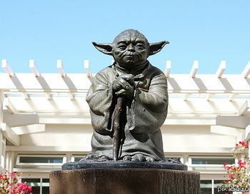 в городе Сан-Франциско, США около киностудии «Lucasfilm» установлен памятник … Йоде – наставнику рыцарей-джедаев из популярнейшей трилогии Джорджа Лукаса «Звёздные войны». Мастер-джедай с «высоты» своего метра с ушками как всегда невозмутимо и назидательно посматривает на простых смертных….