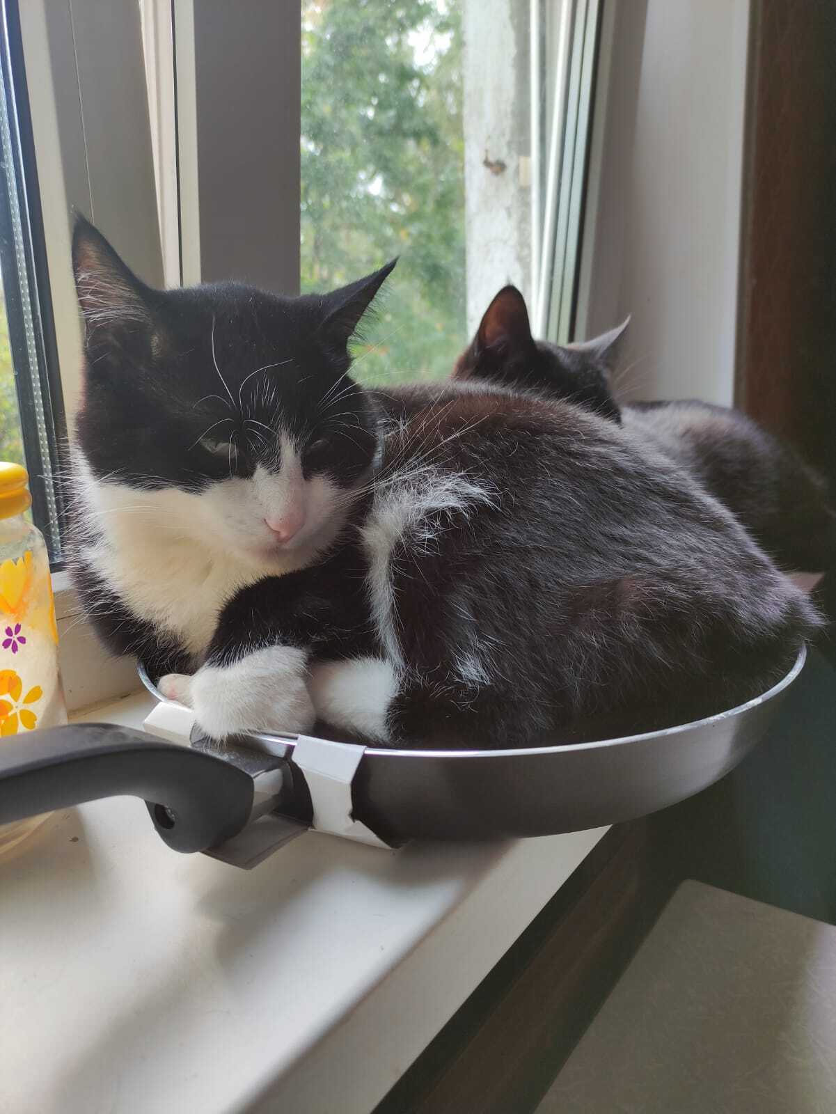 Пришли в банду в 2018 году, на тот момент Черный был ещё при пушистых а вот у Сони пузо было уже в зелёнке.