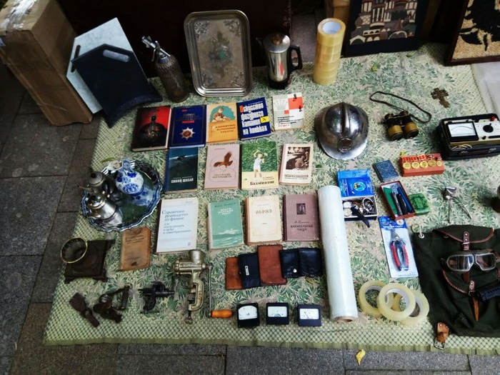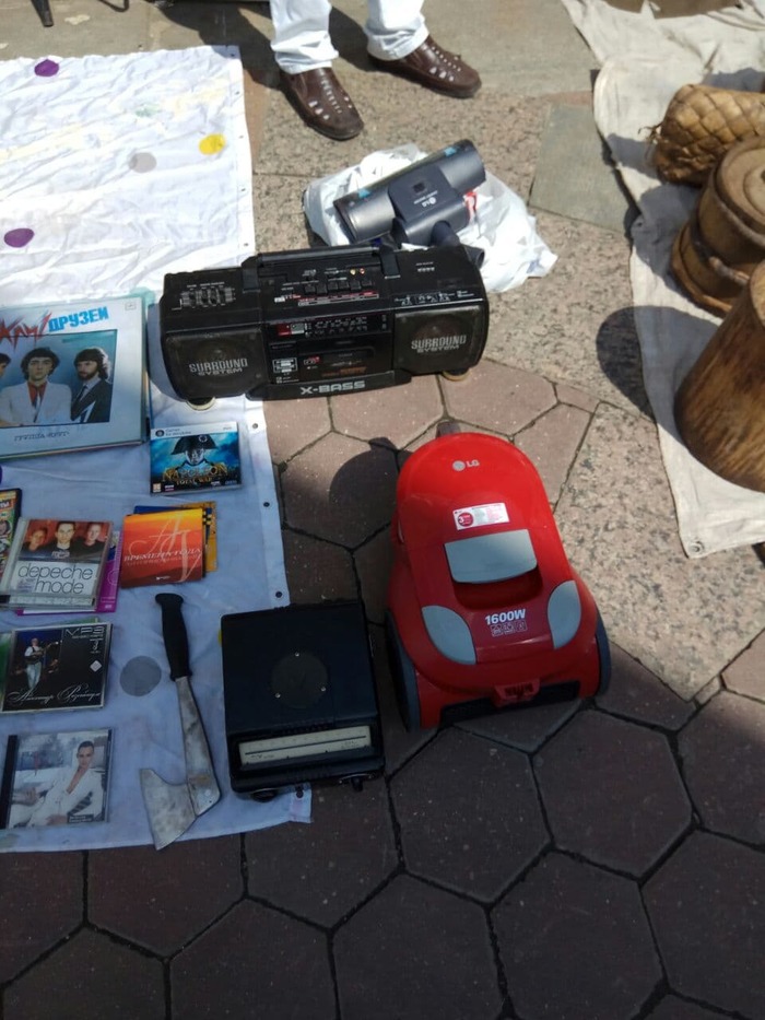 Типичная блошиная стихийная лавочка, где торгуют всем что нашлось дома или на помойке.