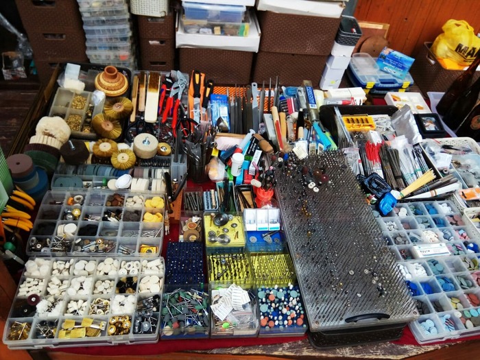 Самая ценная часть для меня - это ларь с ювелирными инструментами. Дядька торгует обычно по субботам, у него просто шикарный ценник (самое дешёвое, что я видел), и можно найти просто всё. Постоянно у него там затариваюсь. потому что там есть всё что нужно. Вот реально рекомендую, если вам нужны всякие бор-фрезы, и средства для шифовки за вменяемые деньги.