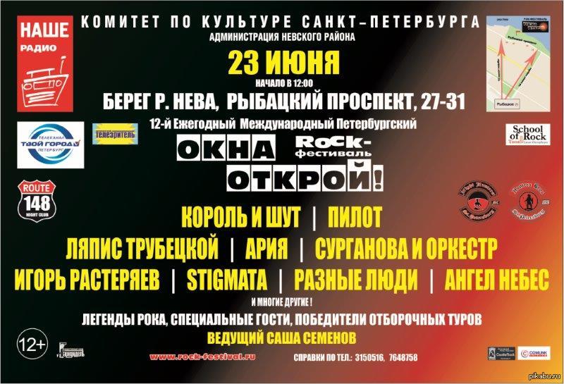 4 hlopchik "Окна открой". Питер. 23.06 12 лет назад Завидую тем, кто едет на "Рок над Волгой", но утешаюсь что скоро и на моей улице праздник. Буквально - то есть в 10 минутах от дома! Кто еще собрался? Окно Рок Фестиваль Санкт-Петербург