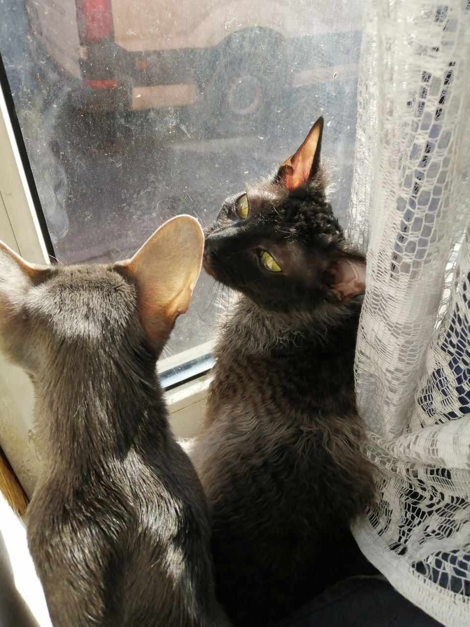 Кошки, как и прежде, принадлежат подруге. Окно ей точно надо помыть.
