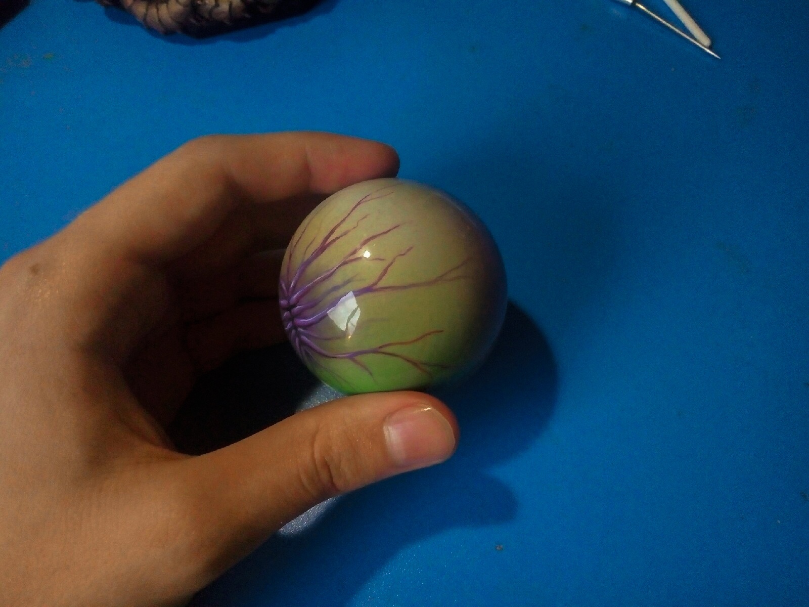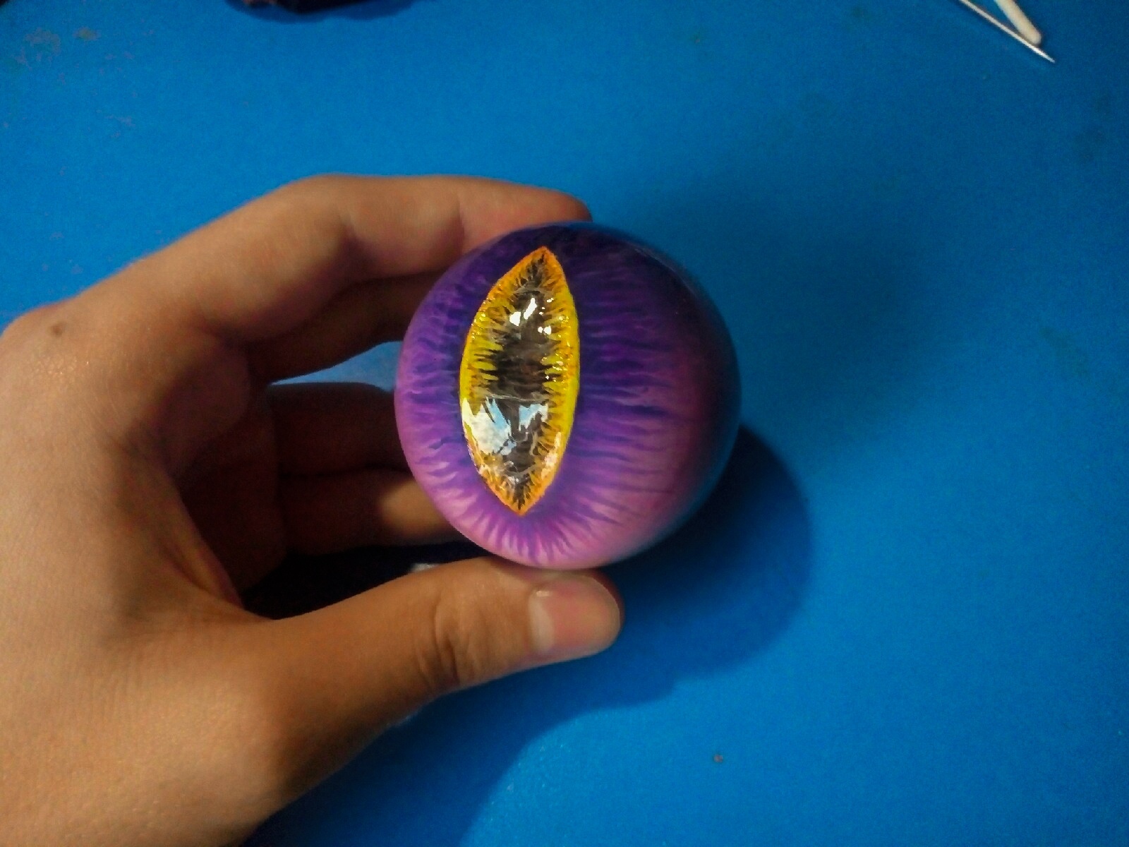 Покрасил и покрыл УФ смолой для имитации глазного яблока.