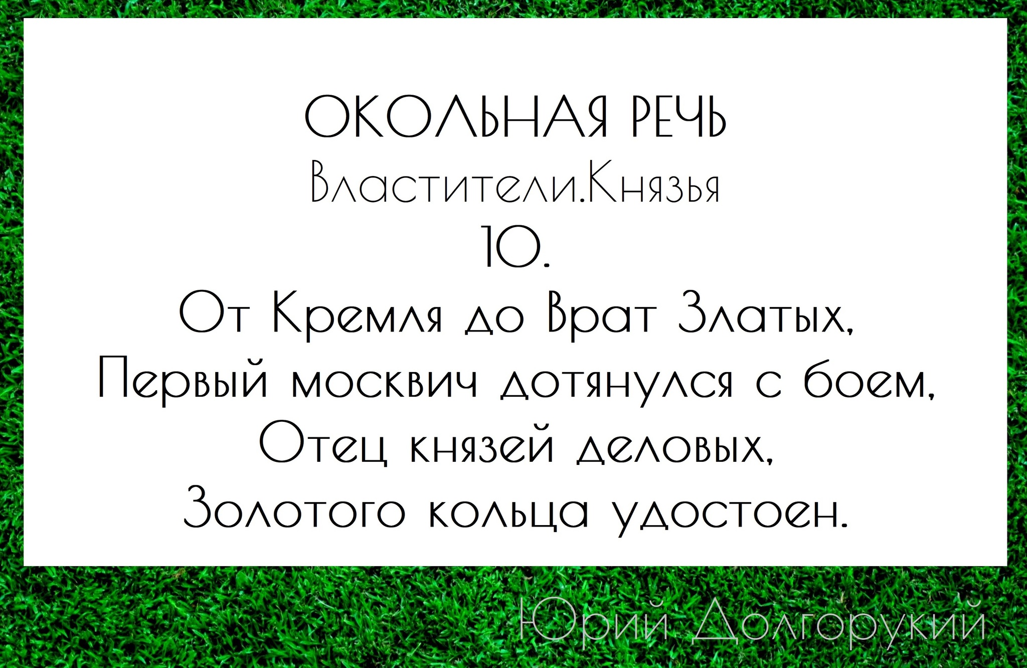 StartFinish Серия ОКОЛЬНАЯ РЕЧЬ в стихах ОКОЛЬНАЯ РЕЧЬ в стихах_10 2 года назад Полностью ОКОЛЬНАЯ РЕЧЬ В СТИХАХ здесь https://stihi.ru/avtor/startfinish [моё] Картинка с текстом Имена Загадка Князья История России Ещё 0