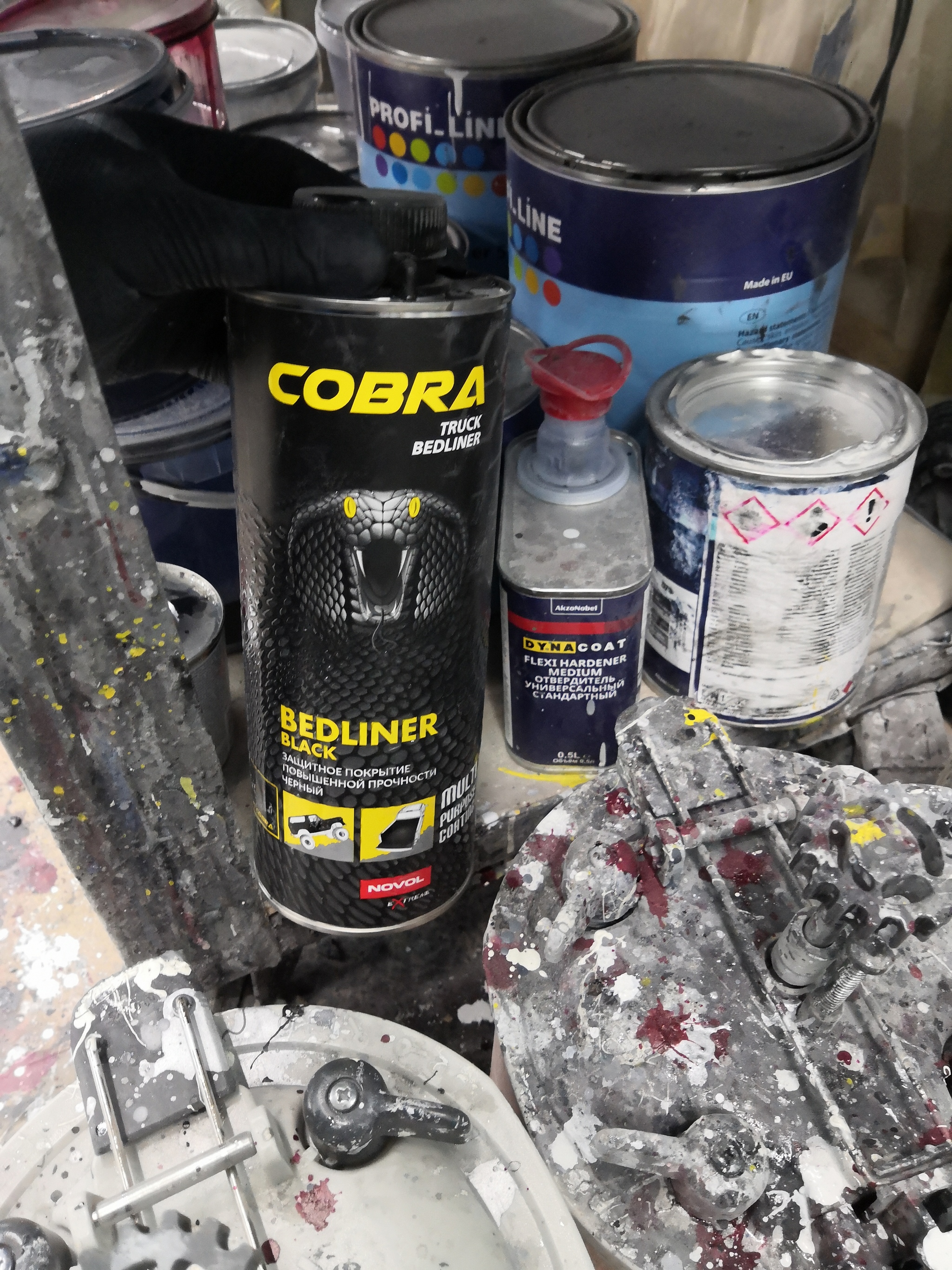 Так как решил красить в цвет и текстуру выноса руля, было выбрано покрытие Cobra.
