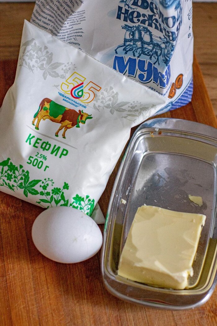 Подогреем кефир, градусов до 37, не надо ставить ему градусник, просто он должен быть теплым. Добавим туда яйцо, соль, сахар, растопленное сливочное масло, ванилин или ванильный экстракт, перемешаем до растворения всех продуктов. Теперь добавляем просеянную муку и соду, размешиваем тесто до гладкости и даем отдохнуть минут десять.