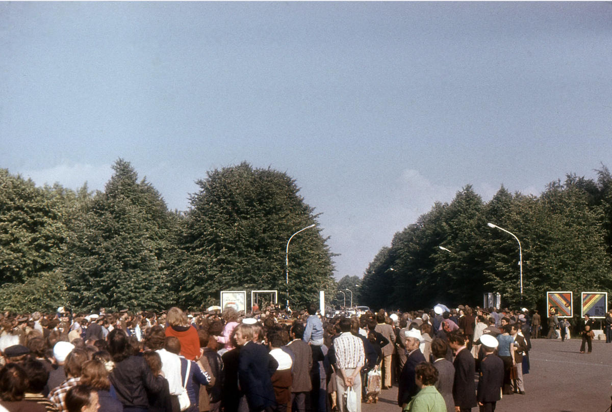 Вид со стадиона имени С.М. Кирова на Морскую набережную во время проведения футбольных матчей Олимпийского турнира. 1980 г.