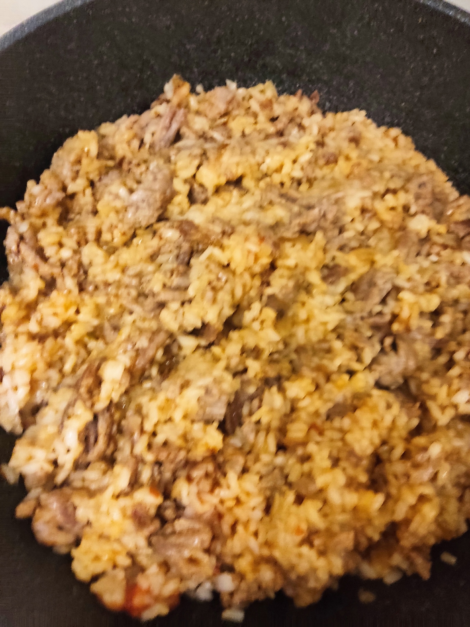 3. Доводим фарш до готовности, добавляем к нему рис и немного кетчупа (у меня очень острый, потому столовой ложки достаточно).