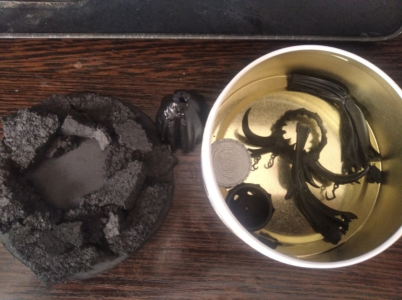 Затем отрезание лишних частей и грунтовка. Тазик с некоторой жижей погрунтован белым, чтобы потом при покрасе создать больший контраст, эффект свечения.