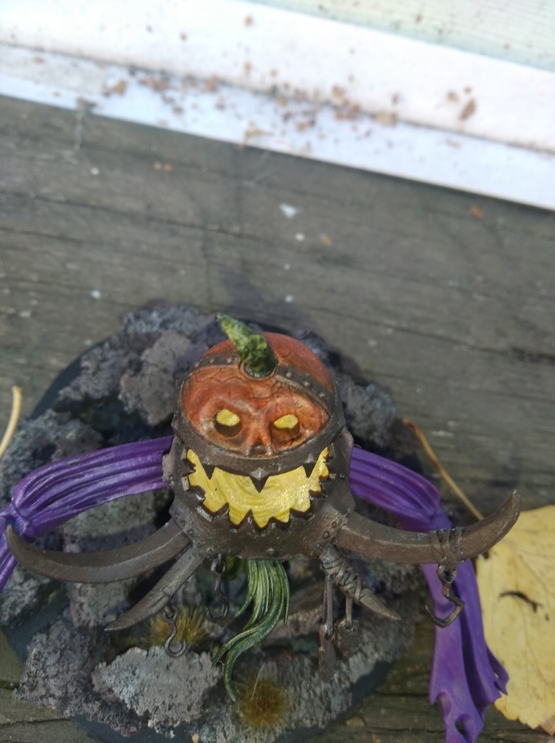 Ну а дальше - покрас, поклейка, лакирование, поклейка отвалившихся деталей заново и итог! АДМный тыквенный Джек восстал и лезет из земли, размахивая призрачными руками.