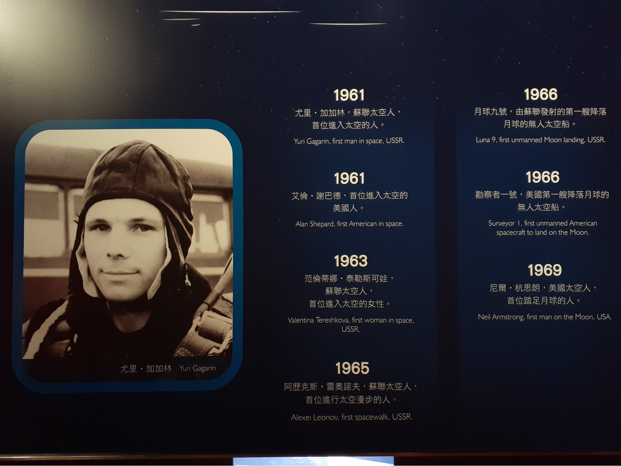 Памятные даты на плакате в гонконгском Музее космоса. «1961 год — Юрий Гагарин, первый человек в космосе, СССР». Вслед за этой датой следуют другие