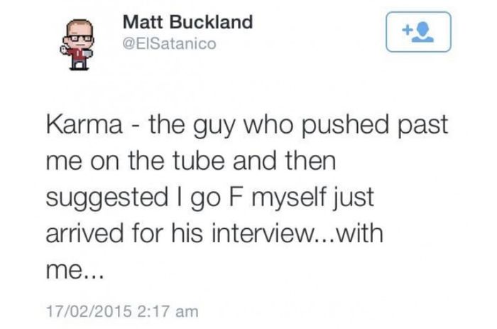 Карма: парень, который оттолкнул меня, когда проходил, а затем послал меня нах@й только что пришёл на собеседование. Со мной.
