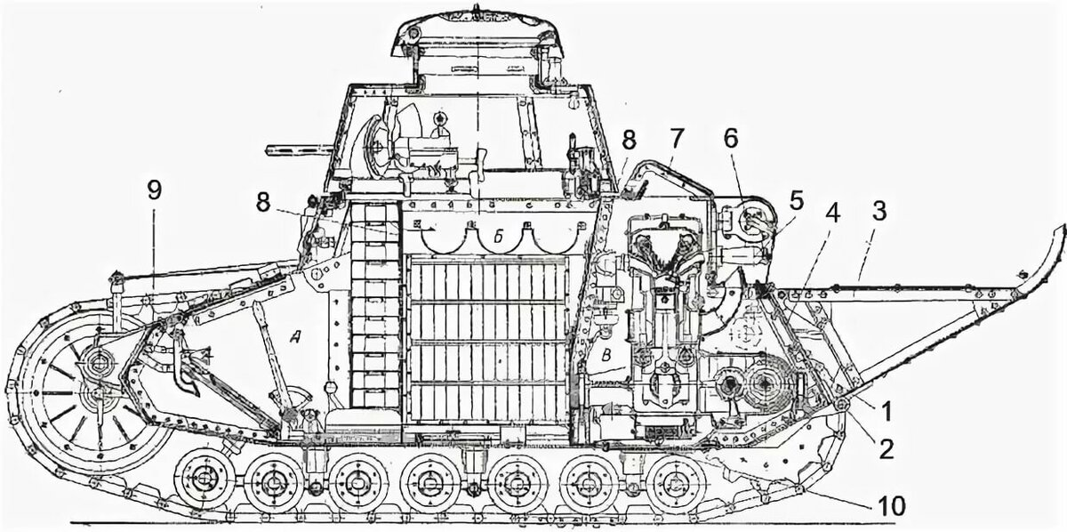Сначала КПП, потом двигатель установленный продольно в корпусе танка у Рено.