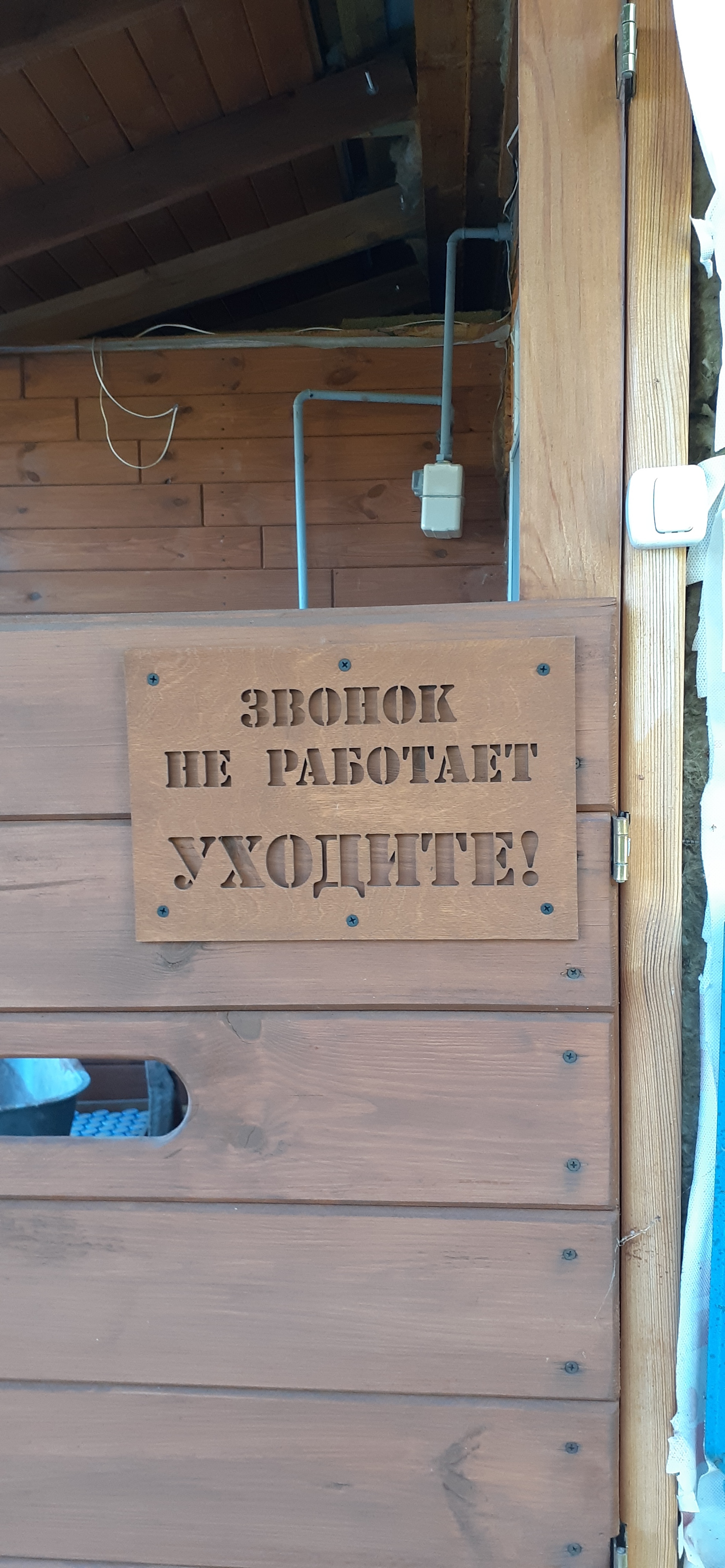 На калитке висит табличка. Повешена чисто ради поржать уже как год.