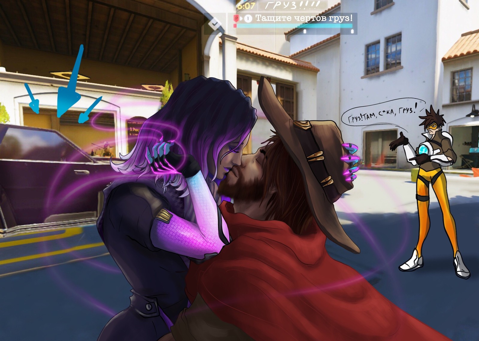 39 tali.doom Overwatch Она взломала его сердечко 6 лет назад И они забыли про груз :D [моё] Procreate Арт Overwatch Sombra McCree