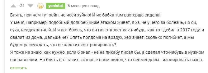 И что же мы видим в итоге в новостях? Ряд, блять, губернаторов срочно отчитались, что будут принимать меры! Нет, не контроль за умалишёнными, волею случая почему-то гуляющими среди нормальных людей. А усиление мер безопасности в школах! И какой-то упырь, то ли квнщик, то ли еще какой клоун авторитетно заявляет: надо в школы крепких мужиков! Блять, серьёзно??? Что в Казани, что в Ижевске - заходит мудак с огнестрелом и ебошит охранника! Какие, блять, меры безопасности усиливать??? Вы ебанулись? Психов не пробовали, сука, контролировать?