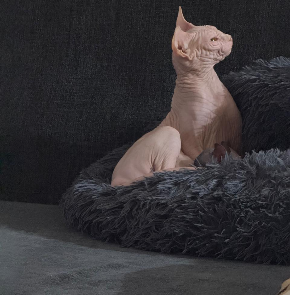 Еще одно следствие отсутствия шерсти. Сфинксы выделяют через кожу особый коричневатый секрет (смесь кожного сала и пота), который защищает их кожу от пересыхания. Из-за этого они могут пачкать постельное белье и одежду, поэтому их нужно регулярно протирать специальными салфетками или купать. Их кожа подвержена солнечным ожогам (как у человека), поэтому выпускать их под прямые солнечные лучи надолго нельзя.