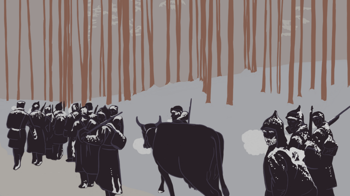Путь из Москвы до Хабаровска занял четыре недели. И чем дальше эшелон уходил на восток, тем меньше было видно из окон: участники событий вспоминают метель, темноту и дым локомотива. Декабрь сковал страну, и уже в середине пути, в районе Тюмени, станционный термометр показывал минус 52 градуса. «Врёт! — усмехался местный сторож. — Сейчас все 60».