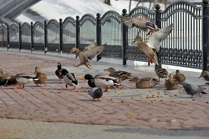 Утки вообще разучиваются самостоятельно добывать пищу. Они становятся совершенно доверчивыми, зависимыми от людей и почти ручными, как голуби, так что напрочь утрачивают способность выживать в дикой среде.
