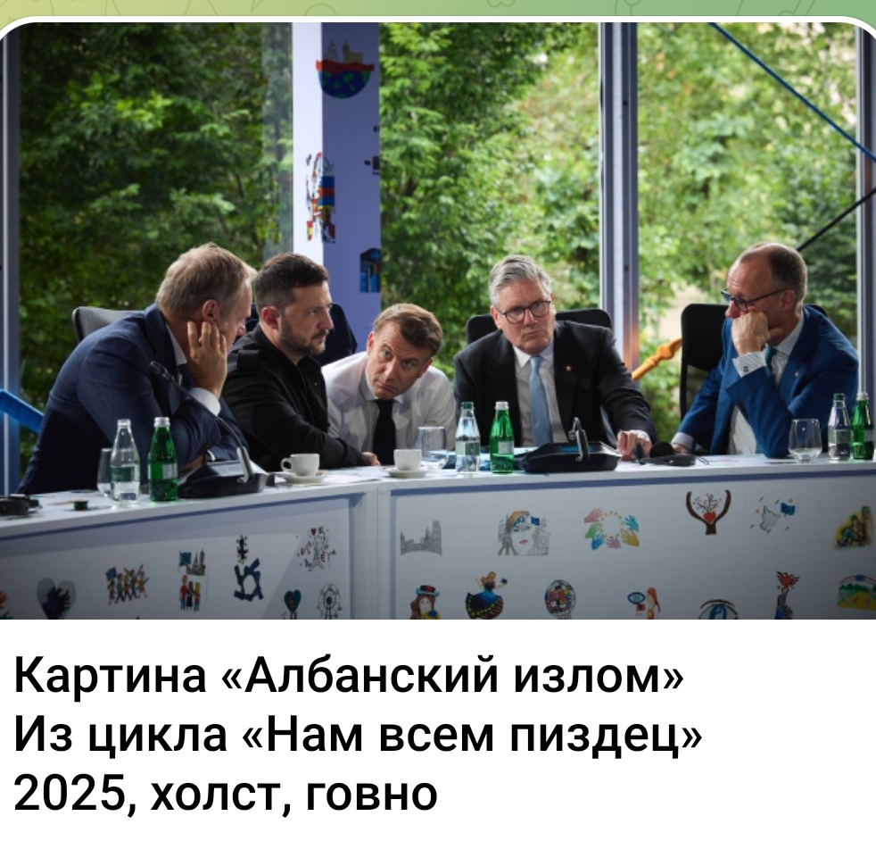 1266 Veliki.Kormhii Они в каком-то детском садике заседают? что за картинки детские? 7 месяцев назад Юмор Политика Эммануэль Макрон Сатира Ирония Картинка с текстом Владимир Зеленский Кир Стармер Дональд Туск Фридрих Мерц Евросоюз Переговоры Конфликт Мат 66 7 2 1 1 Ещё 0