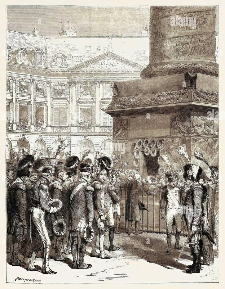 «300 тыс. франков раздать офицерам и солдатам батальона моей гвардии с острова Эльба, оставшимся в живых, или их вдовам и детям. Увечные или тяжело раненые получат вдвое…»