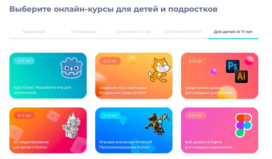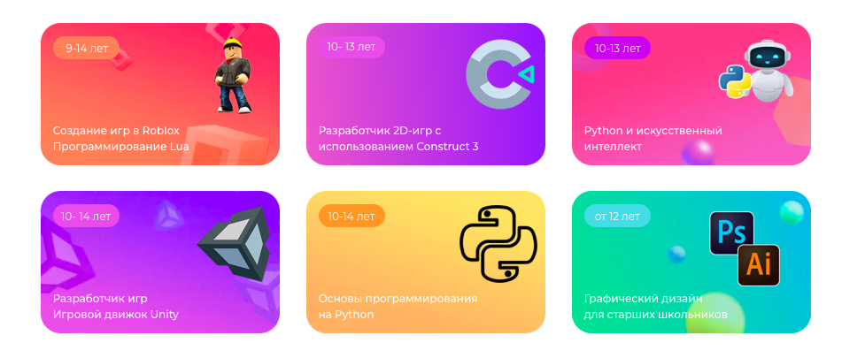 Дополнительно в рамках обозначенного возрастного периода можно освоить веб-дизайн, разработку на движке Roblox Studio и подобные, альтернативные направления вроде «сухого» Python.