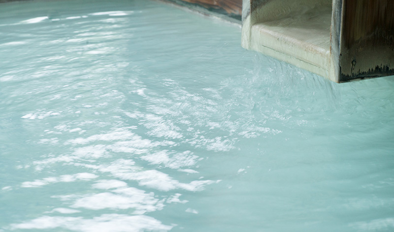 Свежая горячая вода из источника течёт в купальный бассейн (фотография предоставлена гостиницей «Симофудзия»)