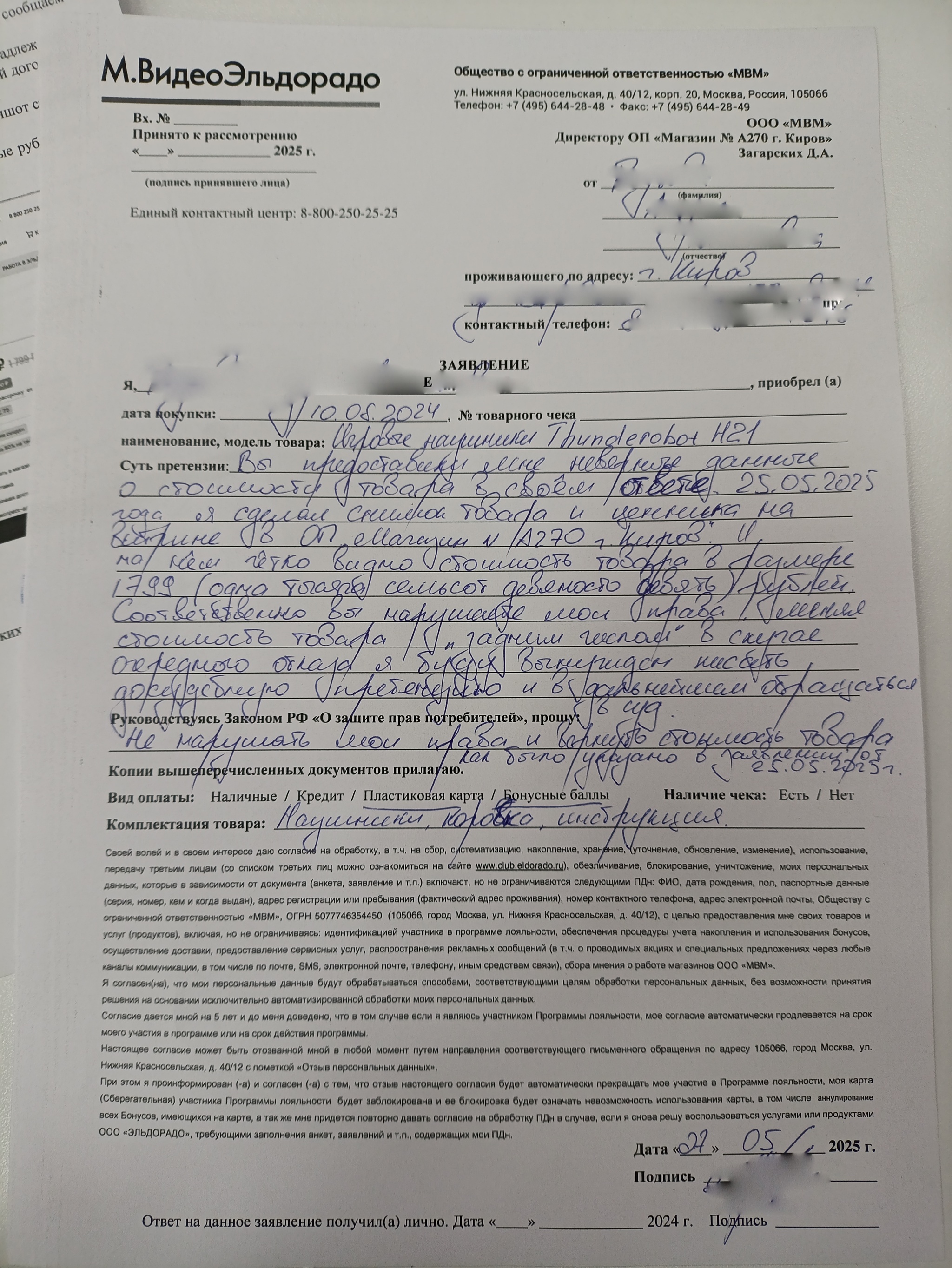 25.05.2025 В отделе продаж мне сообщают что готовы вернуть деньги за товар или обменять на другие. Я прошу вернуть их стоимость, но актуальную на данный момент:
