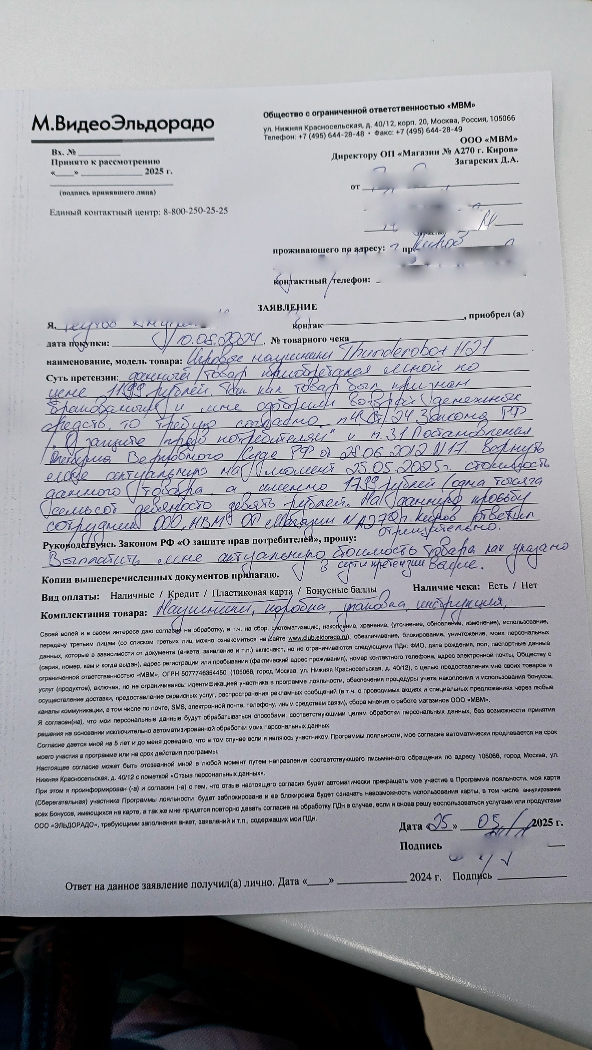Пишу заявление с требованием провести тщательную экспертизу и вернуть мне стоимость товара.