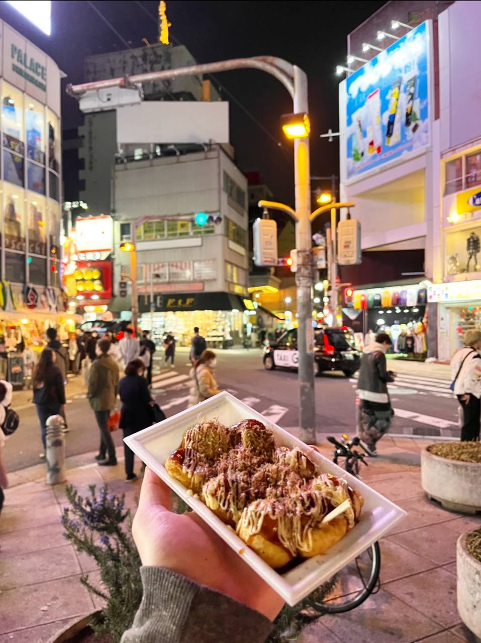 Я очень люблю традиционные такояки — это одно из первых японских блюд, которые я попробовал. Однако, в этот раз мне не повезло: первый шарик, который я съел, оказался с васаби.