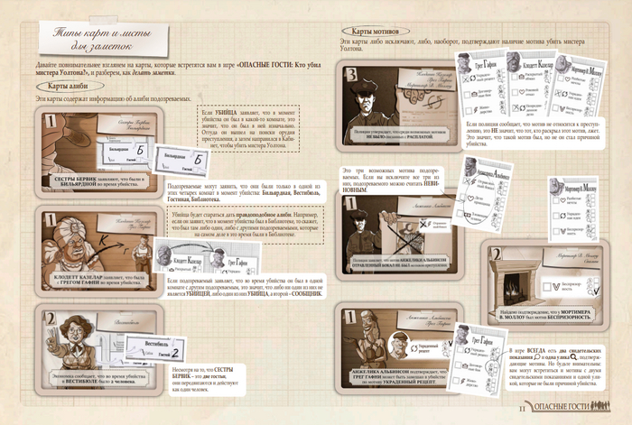 Как я уже упоминала выше, колода в «Опасных гостях» содержит информацию иного рода, чем та, что мы привыкли наблюдать в классических детективных играх.