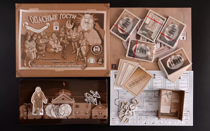Игра "Опасные гости" была разработана Роном Гонсало Гарсией и локализована в России издательством Фабрика игр. Основываясь на традициях классических детективных игр «Опасные гости» используют колоду карт, игровое поле (представлено на заднике обложки буклета правил) и серию запросов, чтобы выяснить, кто, почему и как умертвил презренного мистера Уолтона.