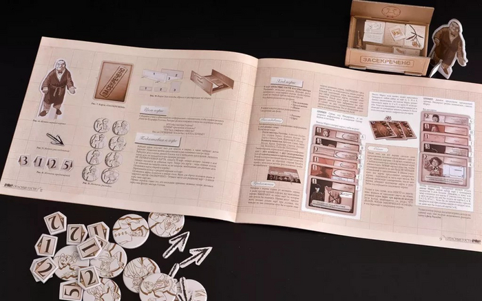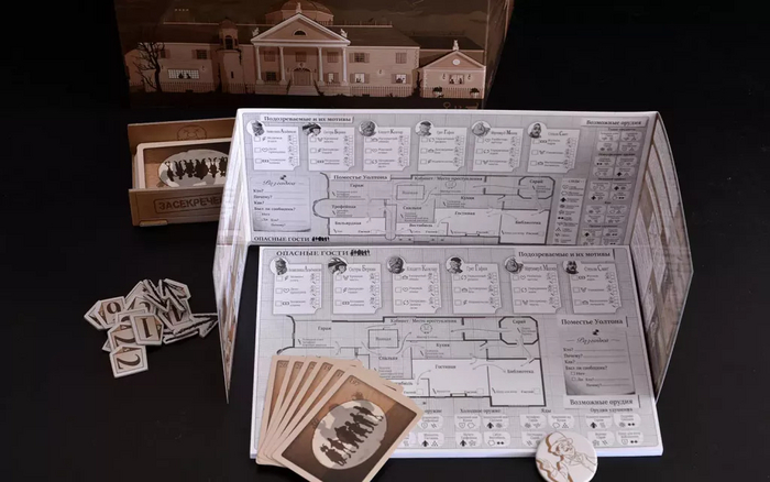 Каждому игроку выдается Ширма с целевой информацией, карандаш и лист Отслеживания, а также жетон Разгадки и стартовая рука из шести карт Улик.