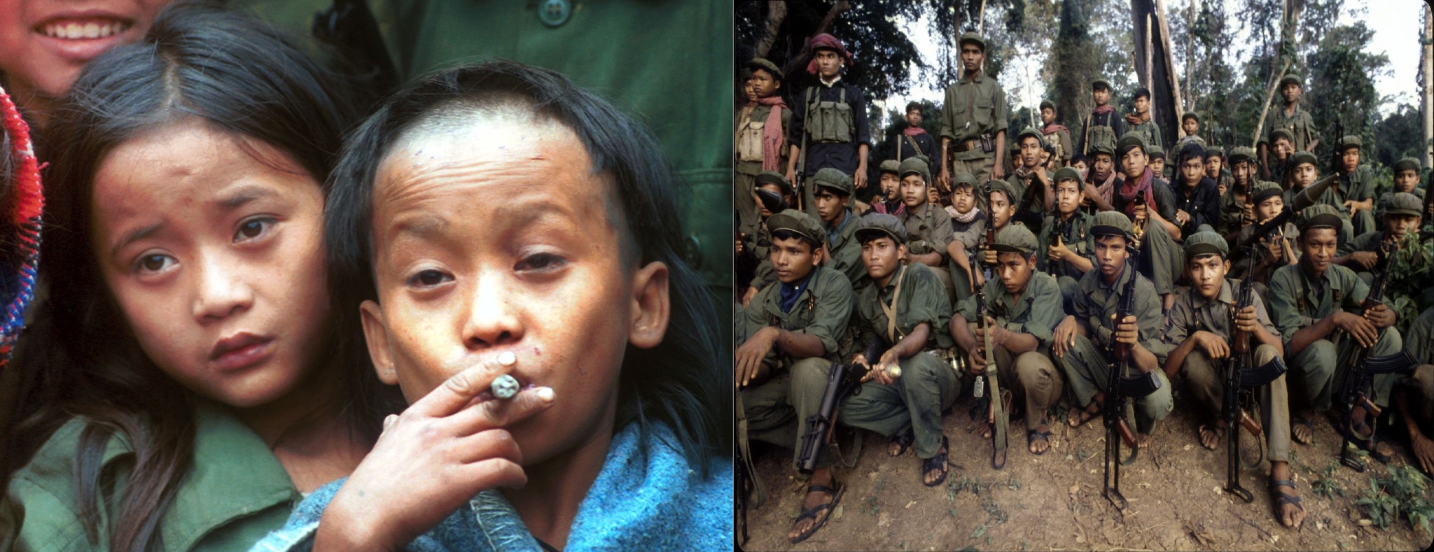 Слева- Джонни и Лютер Хту, справа- дети- солдаты армии "Красных кхмеров"