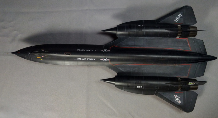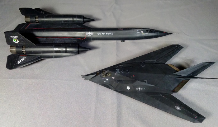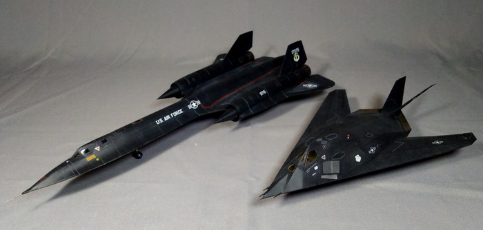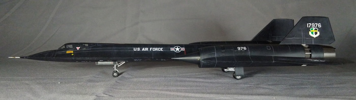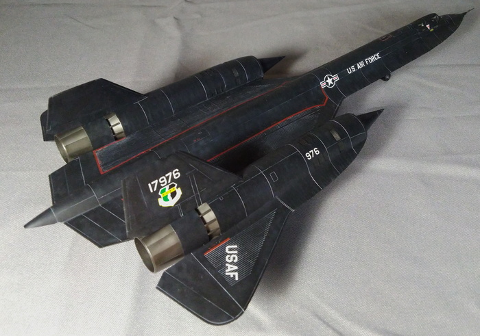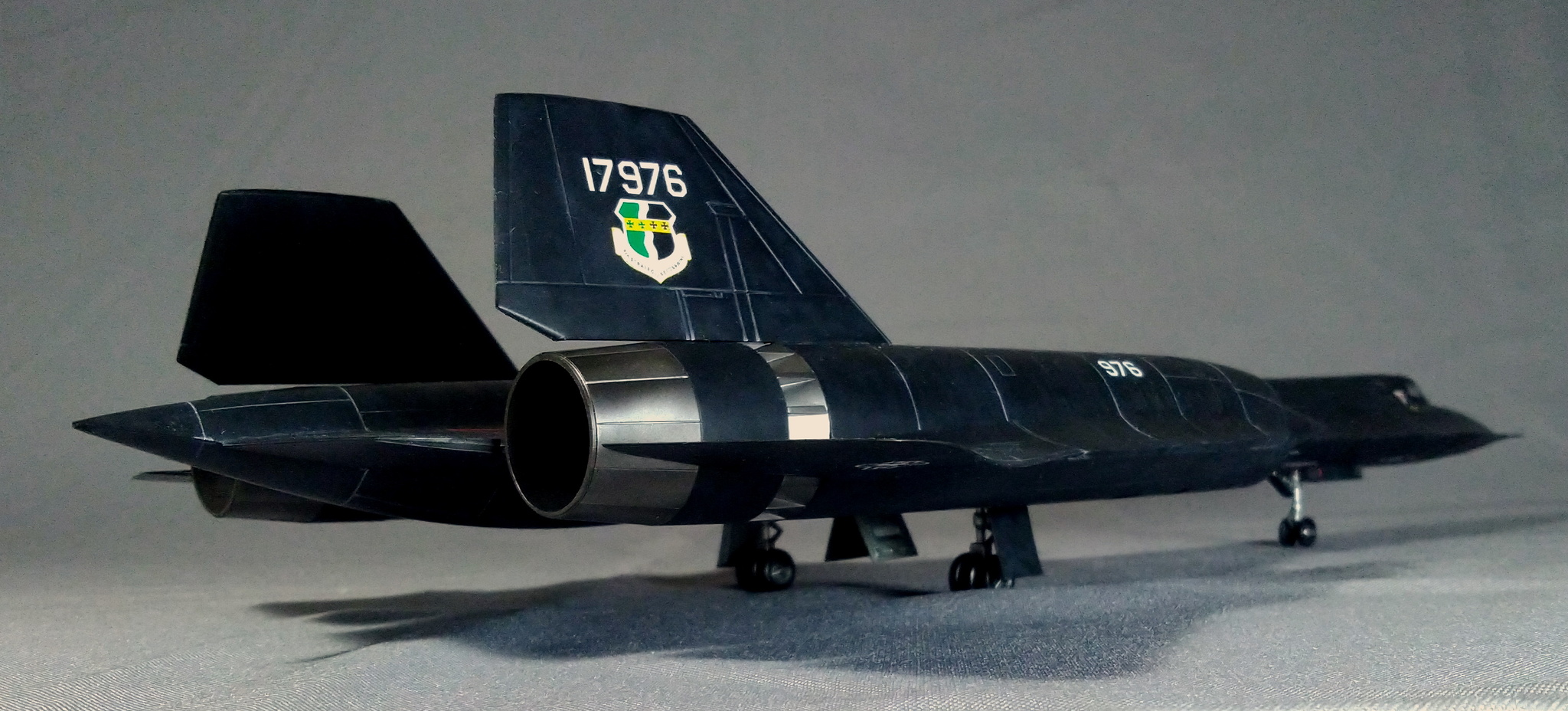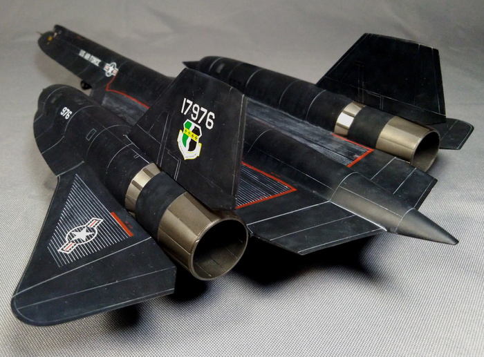 Представлен Lockheed SR-71A Blackbird с бортовым номером 17-976, совершивший 942 вылета и выполнивший 257 разведовательных задания, рекордсмен среди собратьев. Авиабаза Королевских Военно-Воздушных Сил Милденхолл, Великобритания, 1977 год. В данный момент этот самолёт находится в музее ВВС США на территории базы Барксдейл, Лос-Анжелес. Модель корейской фирмы Academy в перепаке от «Моделиста», 1/72.