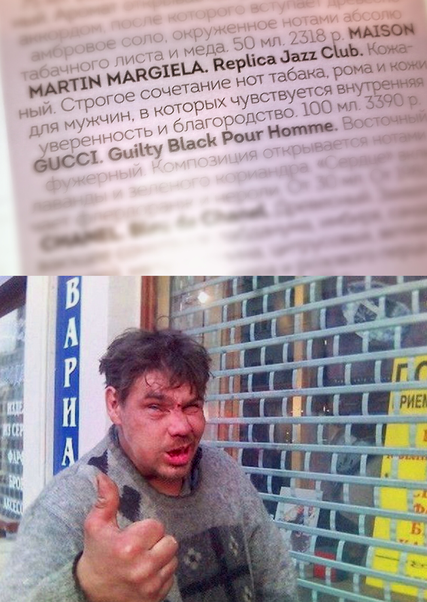 Все бы ничего, но амбре от любого стереотипного алкаша можно описать похожими словами - разит самым дешевым табаком, перегаром и неделями не мытой кожей. То есть почти как аромат парфюма))