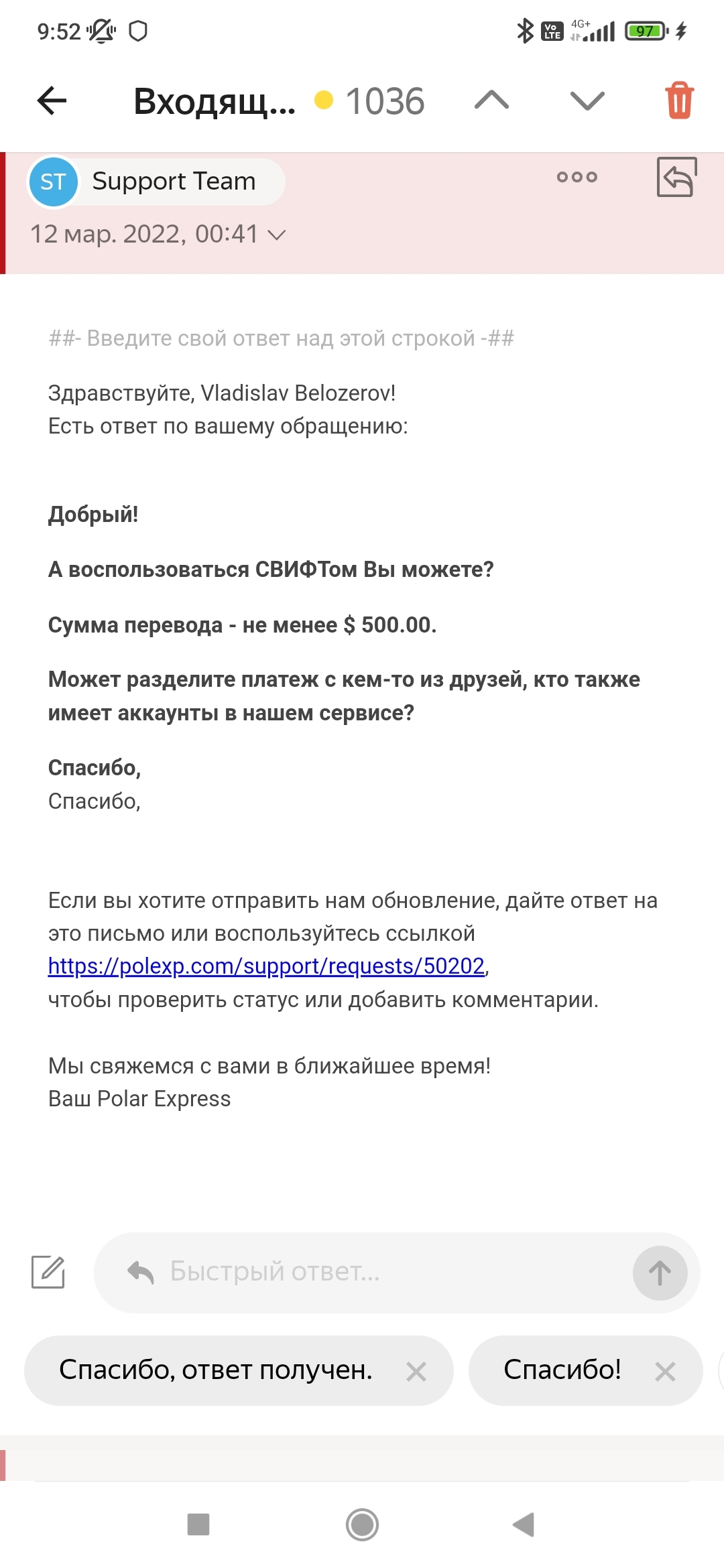 Jok1 Оплата через Swift, кто нибудь сталкивался? 3 года назад Из CША в первый раз решил заказать настольную игру, так получилось что попал в этот хаос с санкциями и транспортная компания Поляр Экспресс не может получить мой платёж, завтра уже платное хранение ( кто то сталкивался как можно оплатить? Текст Помощь Swift США Скриншот Длиннопост Ещё 0