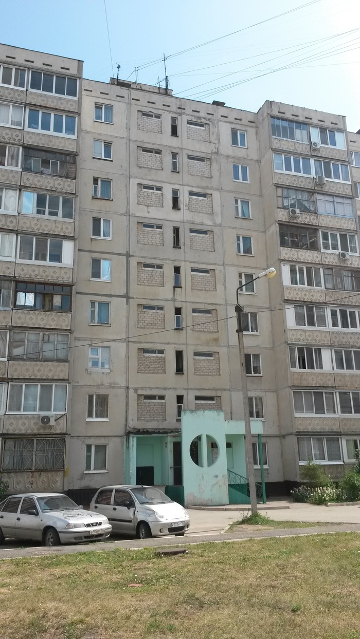 В Уфе в целях повышения энергоэффектиности здания от С к А решили заложить кирпич проектные световые окна (х.з. сколько лет уже). Только не говорите что окна постоянно выбивают! Платиковые окна трудно выбить к тому же дом находится аккурат напротив Отдела полиции №1 г. Уфа (ул. Мушникова, 11).