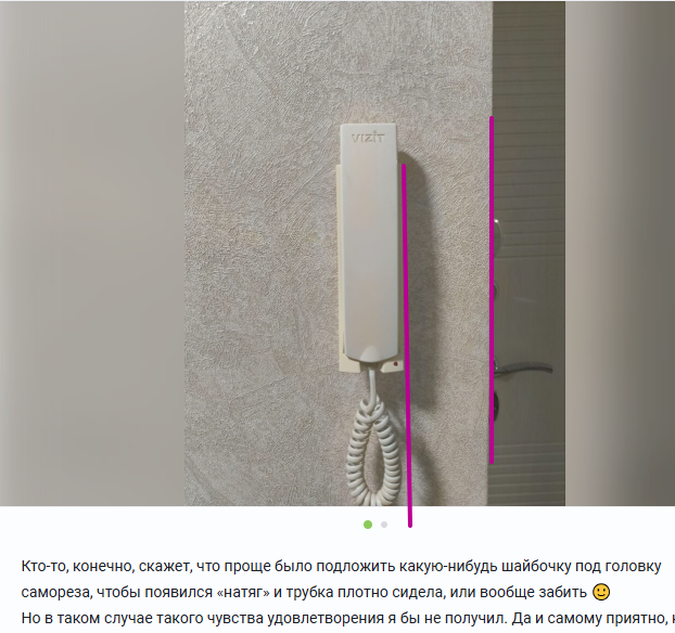 Но в таком случае такого чувства удовлетворения я бы не получил. Да и самому приятно, когда даже простое крепление домофона сделано добротно — и ты об этом знаешь.