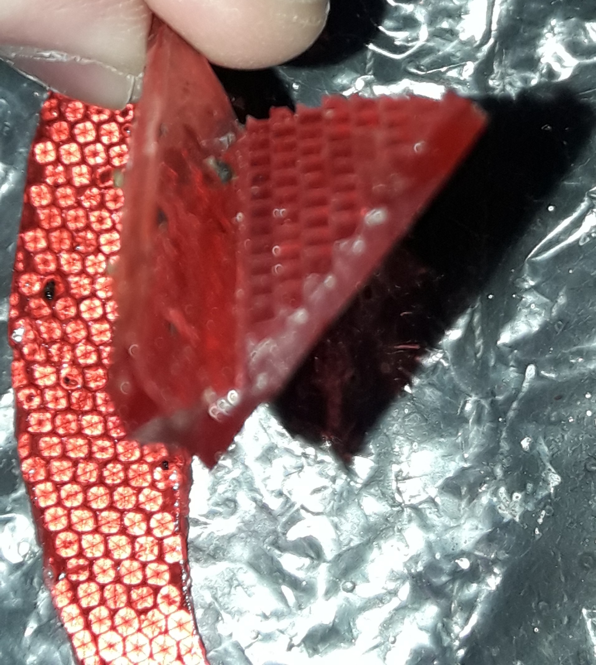 Оставил вмятину, загиб створки и куски плафона, провалившиеся внутрь гаража.
