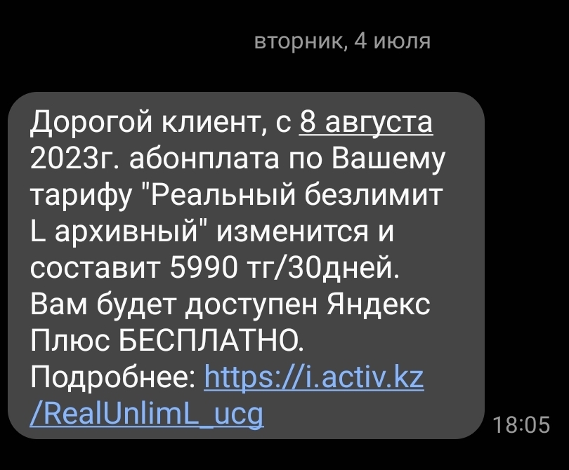 https://kz.kursiv.media/2023-06-22/skvr-operators/ С 17 апреля 2023 года введены в действие новые правила оказания услуг связи. Казахстанские операторы могут менять только стоимость тарифного плана, но не его наполнение или другие условия.